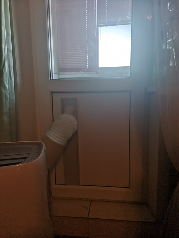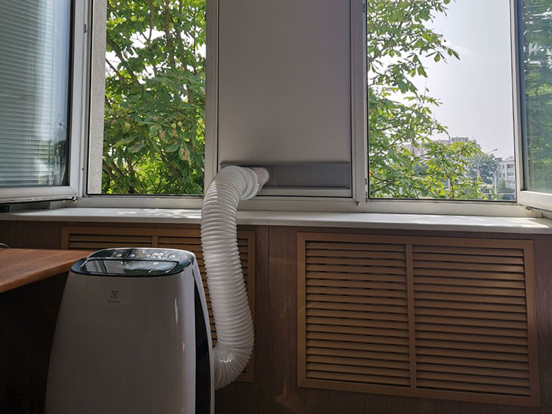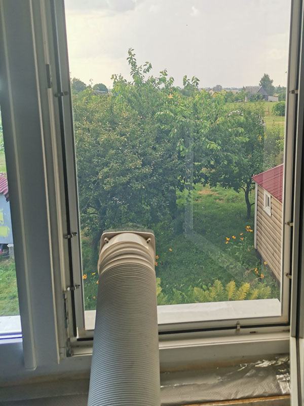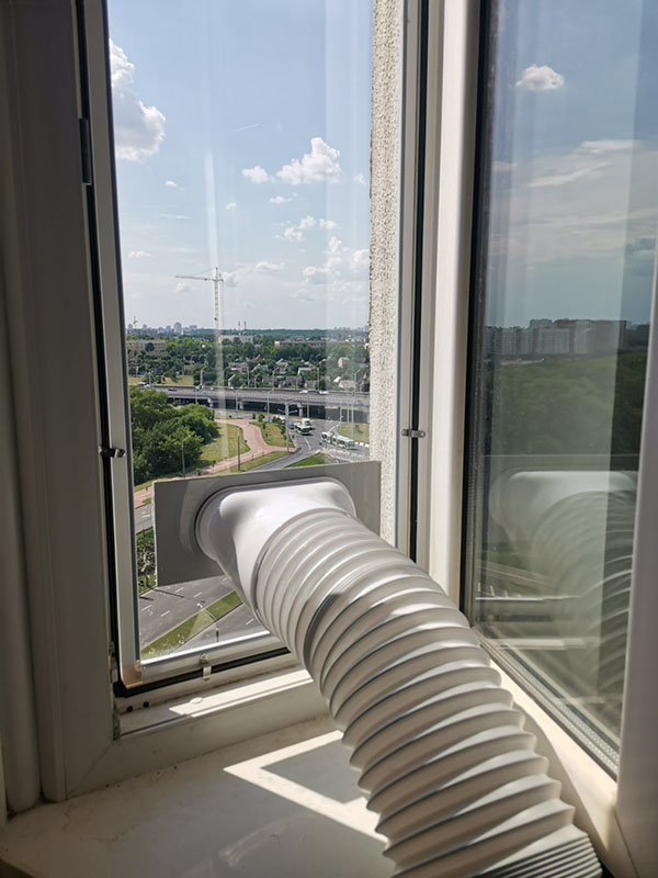 Закажите специальную оконную вставку (иногда ее называют экраном) для воздуховода и наслаждайтесь прохладой с комфортом