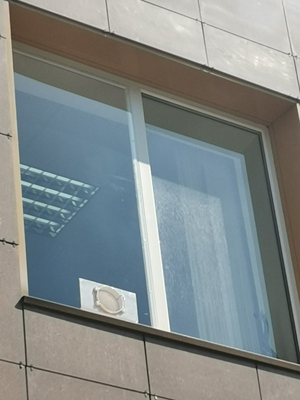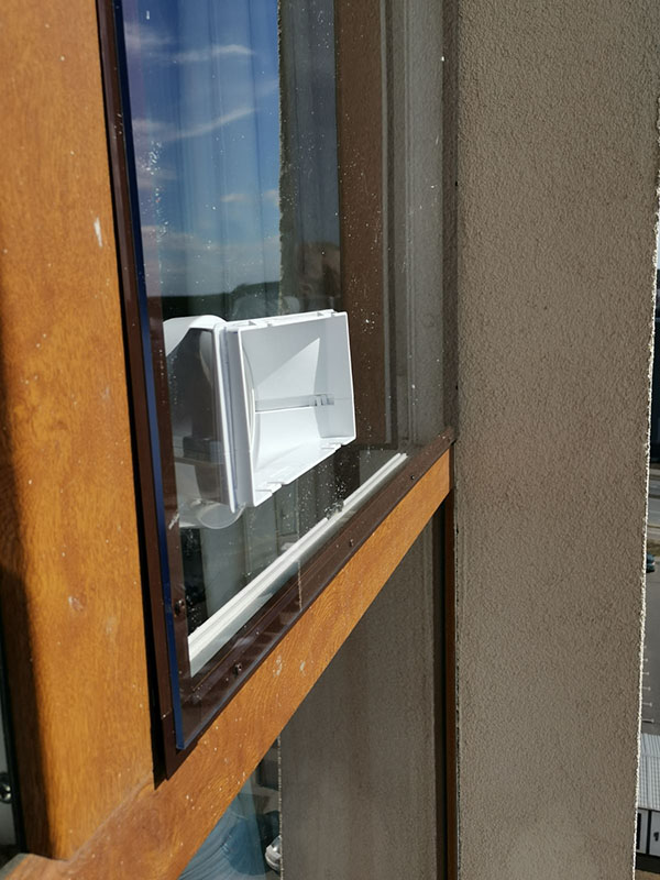 Аккуратный и правильный вывод в окно воздуховода от напольного кондиционера